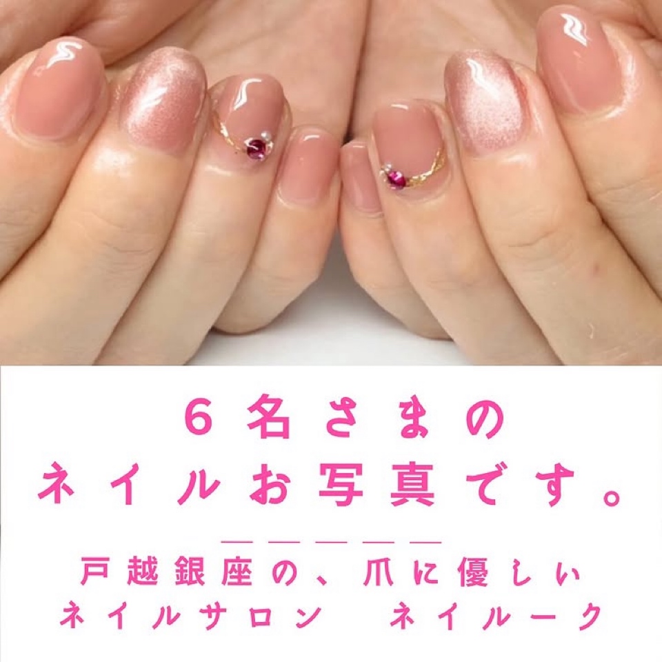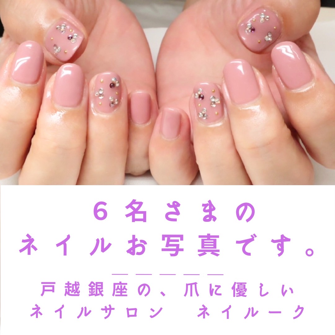 . お客さま6名さまの、ネイルお写真です。 ありがとうございました! ネイルークでは、爪に優しいジェルネイルに こだわっています。 地爪の表面を削らず、オフのと…