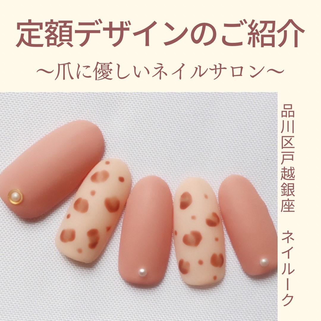 . . 定額ネイルデザインのご紹介です。 落ち着いたピンク2色使いに、 レオパード柄とマット仕上げで遊び心をプラス。 大人可愛さが感じられる、上品ネイルです。 …
