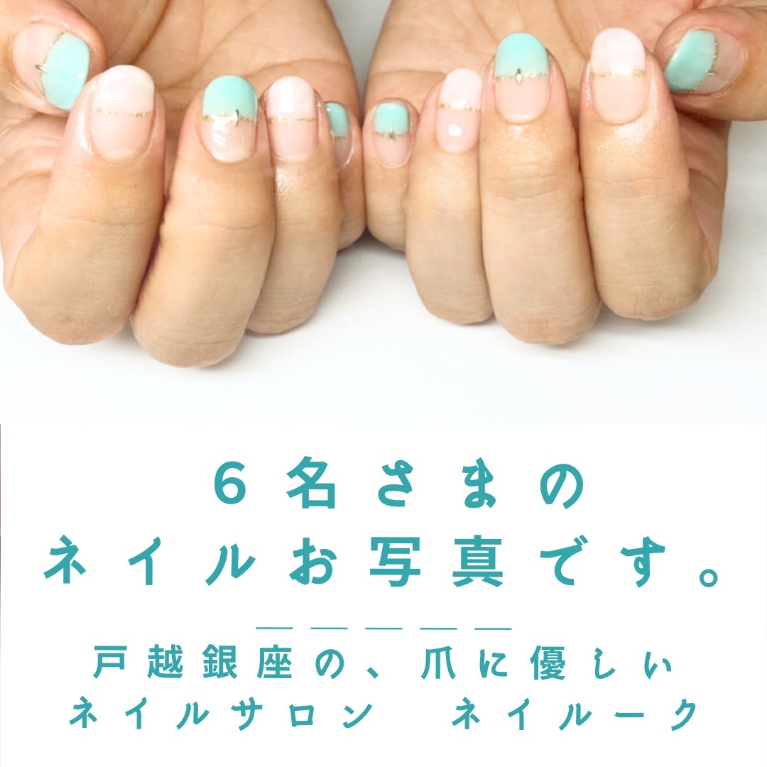 . お客さま6名さまの、ネイルお写真です。 ありがとうございました! ネイルークでは、爪に優しいジェルネイルに こだわっています。 地爪の表面を削らず、オフのと…