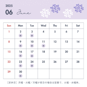 6月の営業カレンダーです。