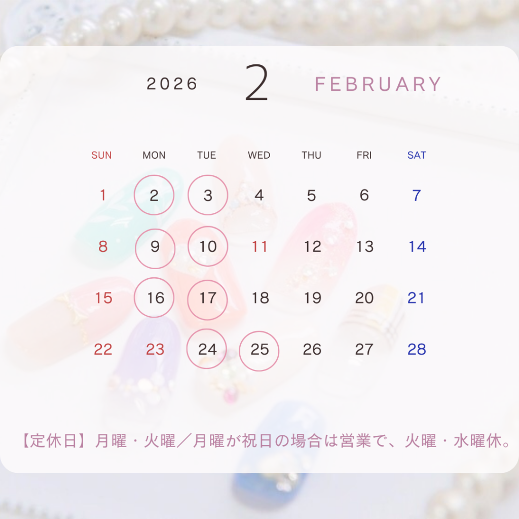 2月も、落ち着いたデザインから華やかなネイルまで、